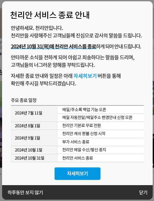 천리안 서비스 종료